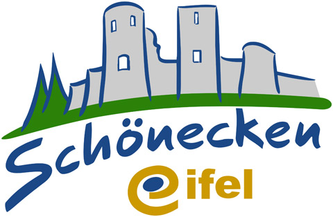 Das Logo der Ortsgemeinde Schönecken zeigt als zentrales Erkennungszeichen die Burg Schönecken. Auf unsere schöne Landschaft wird durch stilisierte Bäume, den naturgrünen Unterstrich und das Gelb im Eifel-Schriftzug Bezug genommen.