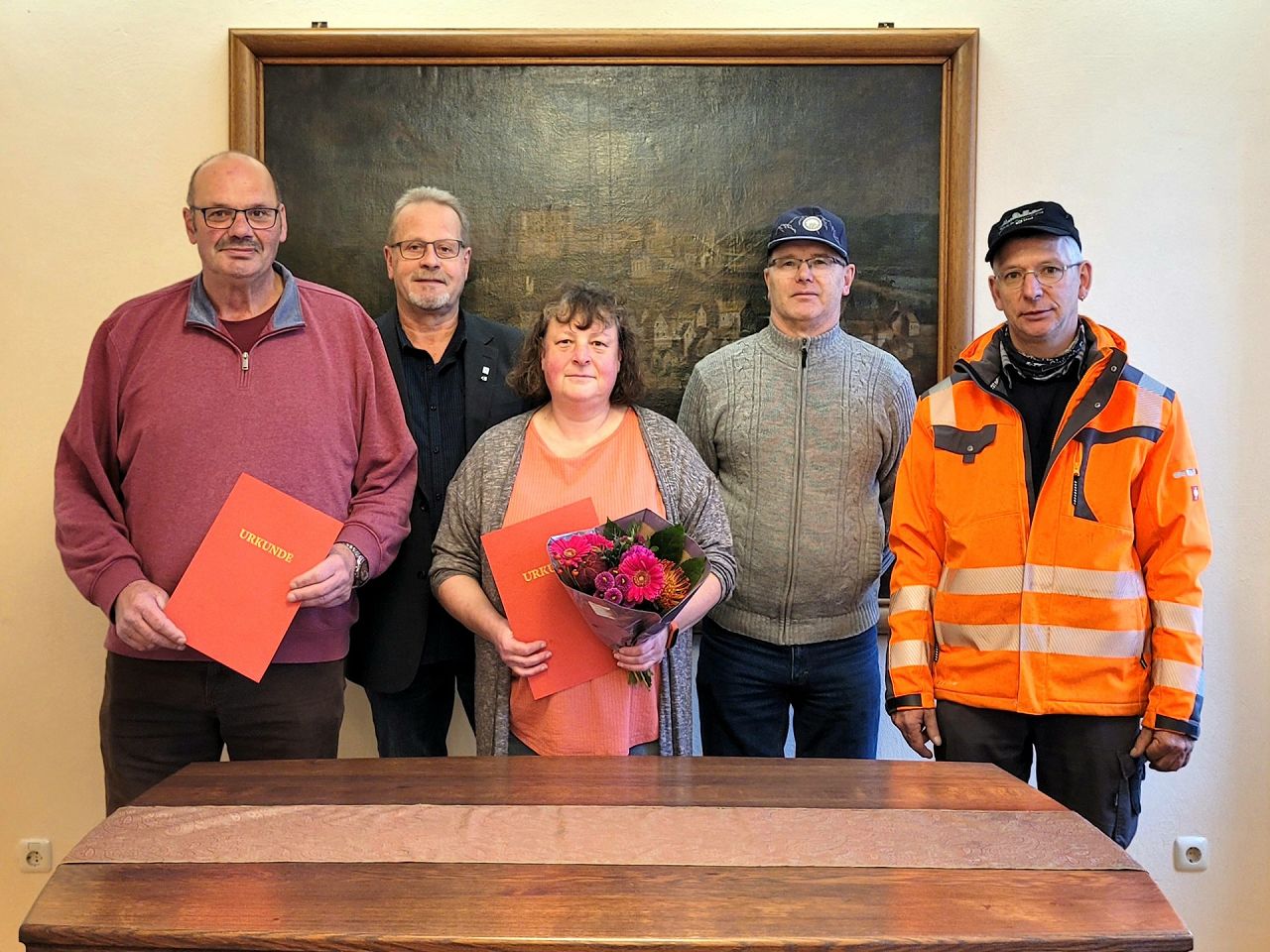 (außerdem auf dem Foto: Bauhofmitarbeiter Alfred Rosch und ganz rechts Bauhofleiter Frank Schifferings)