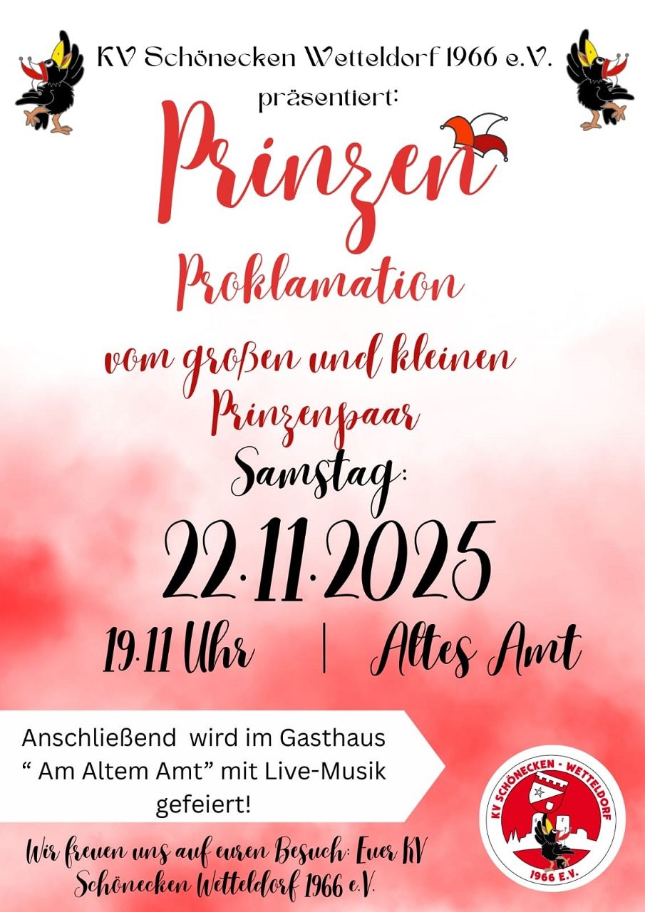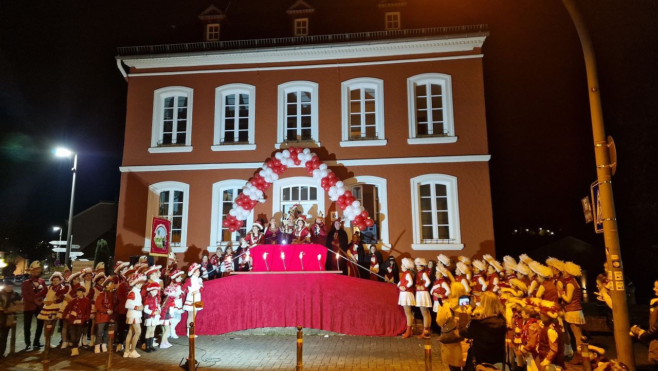 Um 19:11 Uhr werden Prinz und Prinzessin sowie das Kinder-Prinzenpaar der närrischen Öffentlichkeit vorgestellt