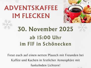 Freuen Sie sich auf einen schönen Nachmittag bei Kaffe und Kuchen in weihnachtlicher Atmosphäre.Es gibt keine Altersgrenzen, Jung und Alt sind herzlich willkommen.